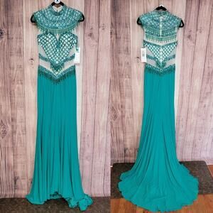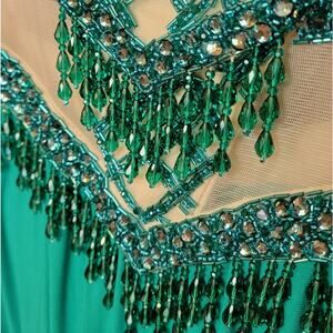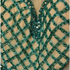 NWT Angela & Alison Emerald Green & Nude Beaded Gown, Style # 51027, Sz 6