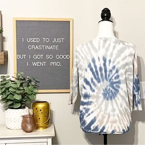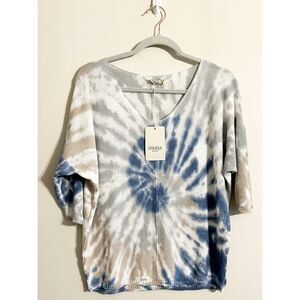 NWT - Angela Blue and Taupe Tie-Dye Knit Blouse - Size S