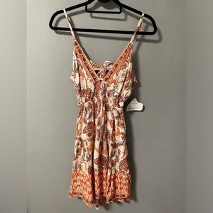 NWT Angie Floral Paisley Boho Print Open Back Dress. Size Large