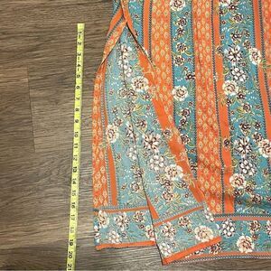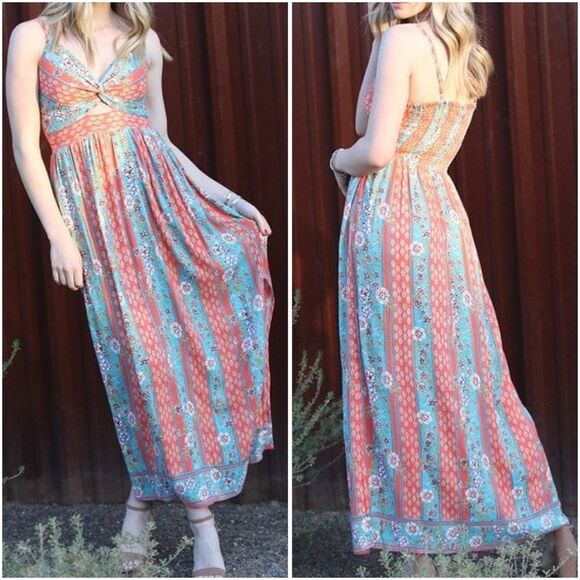 NWT Angie Boho Knot Front Floral Printed Maxi Dress Blue Orange Size Medium