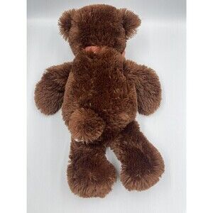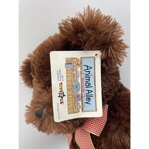 The product is a vintage Animal Alley teddy bear from Toys "R" Us, measuring 16 inches in size. This plush bear is brown in color and comes with a bow, adding a touch of charm to its appearance. It is designed to be weighted, giving it a more realistic and huggable feel. The recommended age range for this teddy bear is for children aged 0 and up, making it suitable for a wide range of ages to enjoy. This collectible toy was manufactured in China and belongs to the Animal Alley character family.