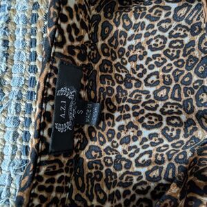 NWT Animal Print High Low Top L/S Small Collared Mobwife No Iron Brown Black Tan