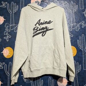 NWT Anine Bing Harvey Heather Signature Graphic Hoodie Sweatshirt Grey Size S