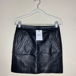 NWT Anine Bing Lamb Leather Mini Black Skirt Studded Size XS