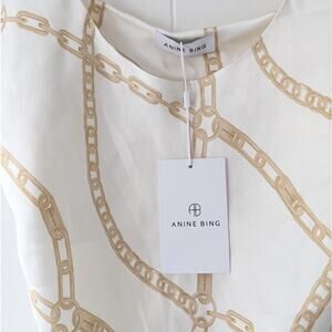 NWT Anine Bing Lisette Chain Printed 100% Silk Sleeveless Slip Mini Dress, size L