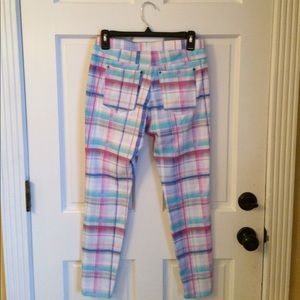 Bought at Dillards and never wore. Brand is HUE, ankle length skinny stretchy pants! Great spring colors! Size medium