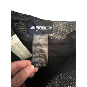 NWT Ann Demeulemeester Black Wool Linen Ankle Trousers Metallic Accent Size 36