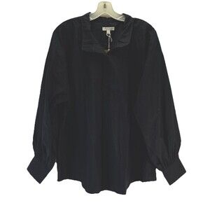 NWT Ann Mashburn Anaya Size XL Popover Long Sleeve Shirt Black Cotton Poplin
