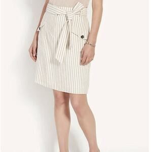 NWT Ann Taylor Beige Tan Striped Linen Blend Belted A-Line Cargo Skirt Size 6