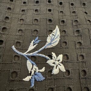 NWT Ann Taylor Black Eyelet Lined Embroidered Floral Short Sleeve Pullover