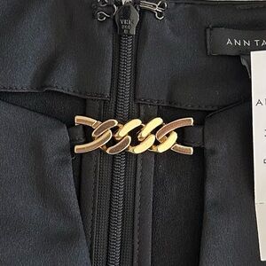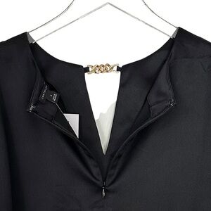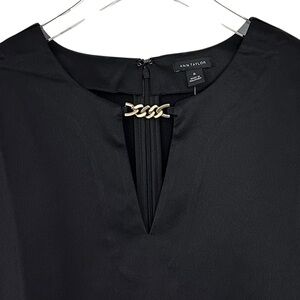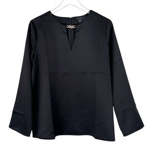 NWT Ann Taylor Black Satin Chain Neck Detail Top Size M