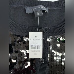 NWT Ann Taylor Black Sequin Front Ann Cardigan Only Womens XS