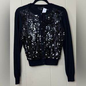NWT Ann Taylor Black Sequin Front Ann Cardigan Womens XS