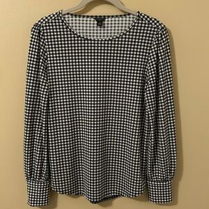 Ann Taylor black and white plaid houndstooth crew neck top size Sp