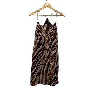 NWT Ann Taylor Brown & Beige Zebra Print Spaghetti Strap Midi Dress Women's Size