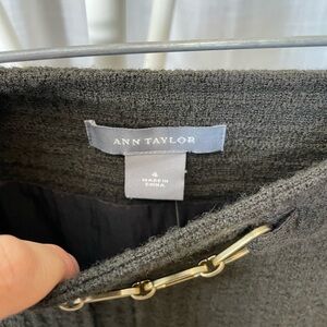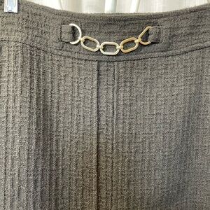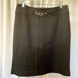 Beautiful virgin wool skirt by Ann Taylor. Dark brown color with lovely texture. Large gold chain detail in the front. Side zip with hook and eye closure. Everything about this skirt screams classy lady. Perfect condition. Never worn. New with tags. Retail $98.