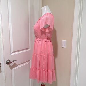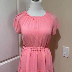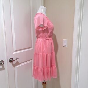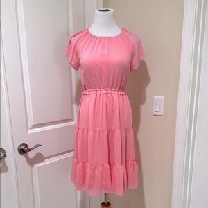 NWT Ann Taylor Candy Pink Fairy Twirl Tiered Split Neck A Line Dress Size XS
