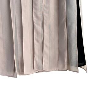 Features: flowy cream chiffon strip overlay, contrasting black lining, elasticized grosgrain waistband, hidden side zipper with hook-and-eye closure.