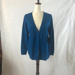 NWT Ann Taylor Dark Ocean Blue V-neck Button-up Cardigan Sweater Size L