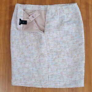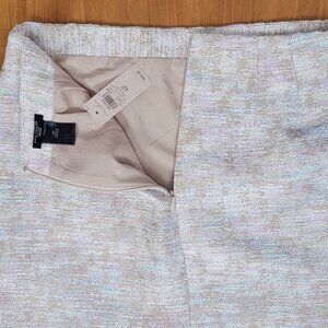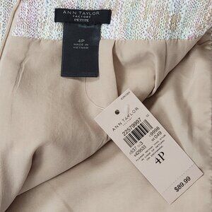 New With Tags! NWT Ann Taylor Factory Multicolor Pastel Textured Pencil Skirt - Size 4 Petite Gold pencil skirt woven with pastel shades of pink, blue white and purple. Fully lined, back darts and an invisible zipper hook/eye closure. Great career/office wear and perfect for spring! STYLE DETAILS: - Ann Taylor Factory - Pencil skirt - Metallic gold fabric woven with strands of pink, blue white and purple pastel threads. - Kick pleat - still basted shut - Back darts - Invisible side zipper with hook and eye closure - Fully lined FIT AND SIZING: Size: Women's 4 Petite Measurements laying flat (approximate): - Waist: 14.5" - Length: 20" FABRIC AND CARE: - Shell: 93% Polyester, 7% Nylon - Lining: 100% Polyester - Machine wash cold, tumble dry low CONDITION: - New with tags, no flaws - Smoke-free, pet free home Feel free to message me with questions or offers Thanks for looking! *** For more great deals, see my sister's closet! https://poshmark.com/closet/hojony