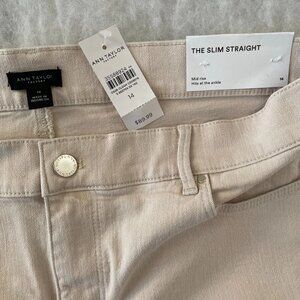 NWT Ann Taylor Factory Womens Ivory Mid Rise The Slim Straight Crop Jeans Sz 14