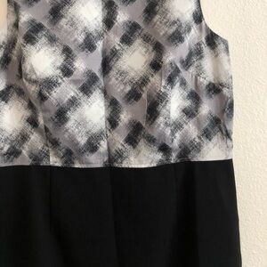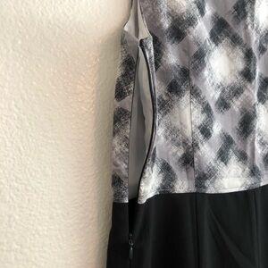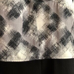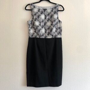 A brand new fitted dress dress with a mix of greys and black, attached to a black skirt. A gorgeous addition to your work place wardrobe!