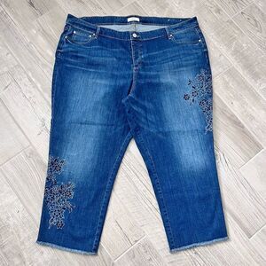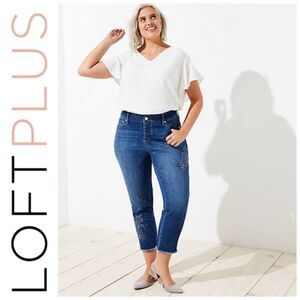 NWT Ann Taylor LOFT Boyfriend Raw Hem Floral Embroidered Jeans 26 (Plus)