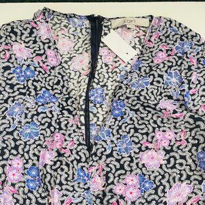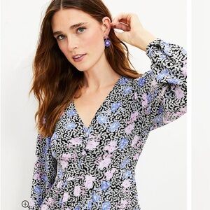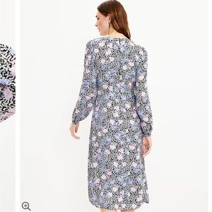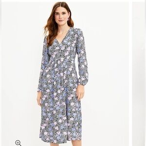 NWT Ann Taylor LOFT Dress Floral Midi Ruched Long Sleeve Puff Shoulder
