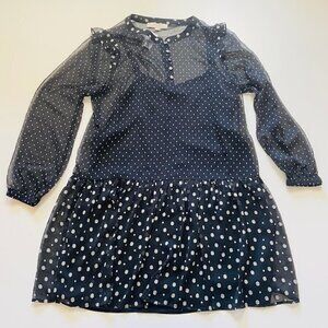 NWT Ann Taylor LOFT Dress Swiss Polka Dot Long Sleeve Chiffon Mixed Print Medium