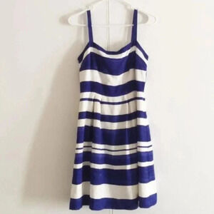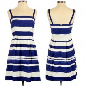 NWT Ann Taylor LOFT Dress White Royal Blue Stripe Box Pleat Sundress size 6