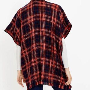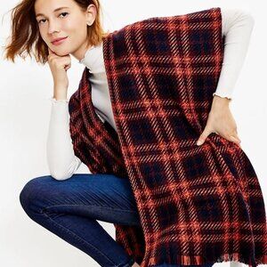 NWT Ann Taylor LOFT Modern Plaid Wrap - Navy Blue Orange/Red - Size X/XL