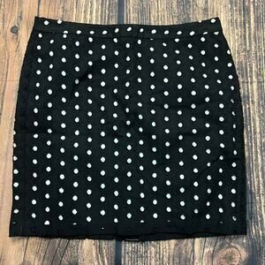 Keywords: Ann Taylor LOFT skirt, A-Line skirt, petite skirt, short black skirt, women's casual skirt, polka dot skirt, cotton skirt, zip closure skirt, dry clean skirt, women's fashion, black A-Line skirt, petite fashion, casual wear, women's clothing
