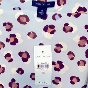 XS Summer tags short sleeve New Leopard Print Blue Square Neck Puff sleeve Top Ann Taylor