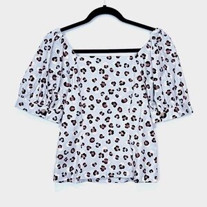 NWT Ann Taylor Leopard Print Blue Square Neck Puff sleeve Top XS