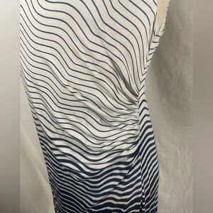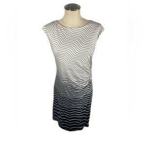 NWT Ann Taylor Loft Black and Cream Striped Side Gathered Midi Dress Size Large