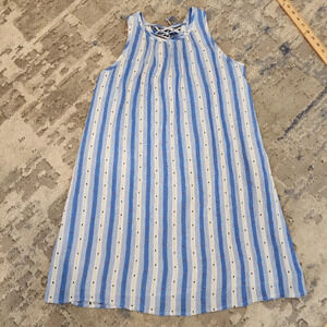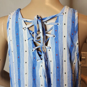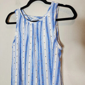 NWT Ann Taylor Loft Blue White Red Dot Sleeves Lace Back Dress Size Small Petite