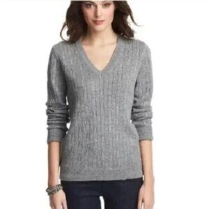 "NWT" Ann Taylor Loft Gray Sparkle V-Neck Wool Blend Cable Knit Sweater Size M