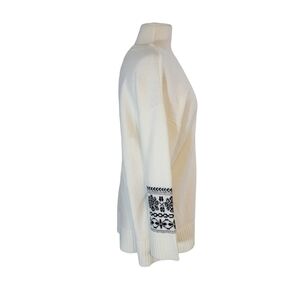 Ann Taylor Loft oversized soft white sweater with black fair isle pattern on sleeves