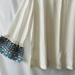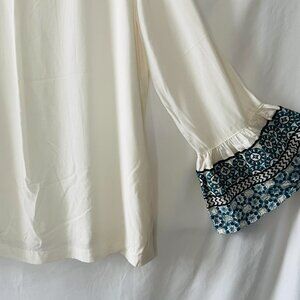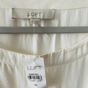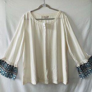 NWT Ann Taylor Loft Womens Cream Bell Sleeve Round Neck Blouse Top Size X-Large