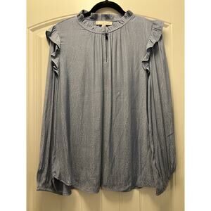 NWT Ann Taylor Loft Women’s Ruffle Neck Long Sleeve Top Blouse Size XL Blue