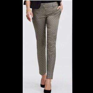 NWT Ann Taylor Metallic Black, Gold Jacquard Ankle-Cut Pants, 10 Petite
