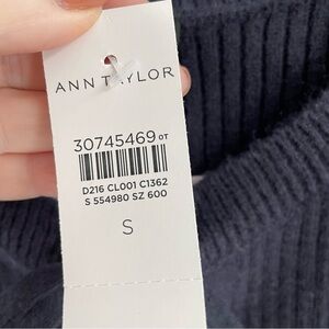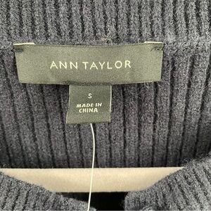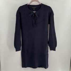 NWT Ann Taylor Navy Blue Ribbed Knit Tie Front Pattern Sleeve Sweater Dress