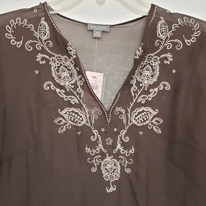 NWT Ann Taylor Petites 100% Silk Embroidered and Beaded Sheer V-neck Blouse
