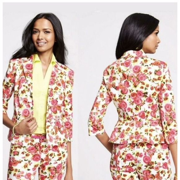 NWT Ann Taylor Pink Peony Floral Blazer Jacket Women's Size 4 Stylish 3/4 Sleeve