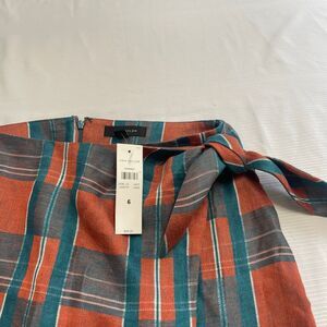 NWT Ann Taylor Plaid Linen Tie Wrap Blue Orange Skirt Size 6 New