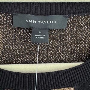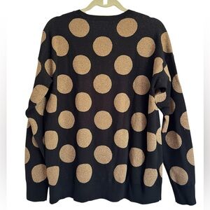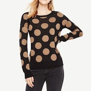 NWT Ann Taylor Polka Dot Shimmer Crewneck Sweater Black Gold Holiday Size Large
