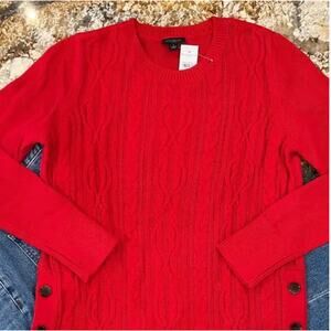 NWT Ann Taylor Red Side Button Cable Sweater - SIZE SMALL