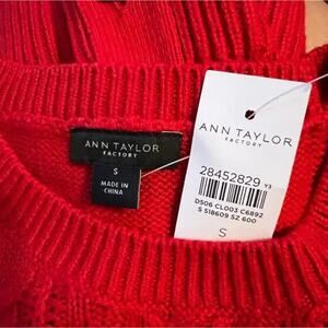 NEW WITH TAGS - RETAIL $80 - SIZE SMALL - This Ann Taylor Factory Red Side Button Cable Sweater is precious, comfy and perfect for cooler weather! Soft & Stretchy Fit, Hits at hip, Crew neck, long sleeves, Side button plackets, Ribbed neckline, cuffs and hem, FABRIC & CARE 53% Cotton, 40% Rayon, 7% Nylon, Machine Washable, COLOR RED