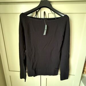 NWT Ann Taylor Ribbed Off Shoulder Black Long Sleeve Sweater SZ LP
