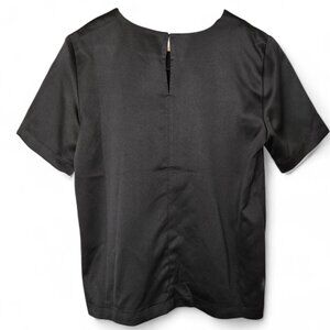 NWT Ann Taylor Satin Top Women's Black Short Sleeve Keyhole Button Back Office M